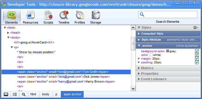 Developer tools od Chrome web preglednika, isto kao i ekstenzija Firebug od Firefoxa, stvara moćno razvojno web okruženje uz koje je web dizajn i izrada web stranica mnogo lakša. Pomoću ovog alata moguće je klikom na bilo koji element ili dio web stranice vidjeti programski kod (html kod) te pridruženi mu CSS (svojstva elementa, naslijeđena svojstva, izračunata svojstva, css layout i sl.), nadzirati veličinu i vrijeme učitavanja resursa od kojih se sastoji stranica (optimizacija brzine učitavanja stranice) te debagirati JavaScript programske skripte uključene u stranicu.