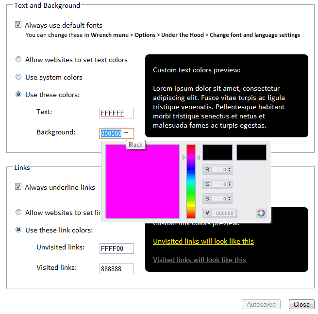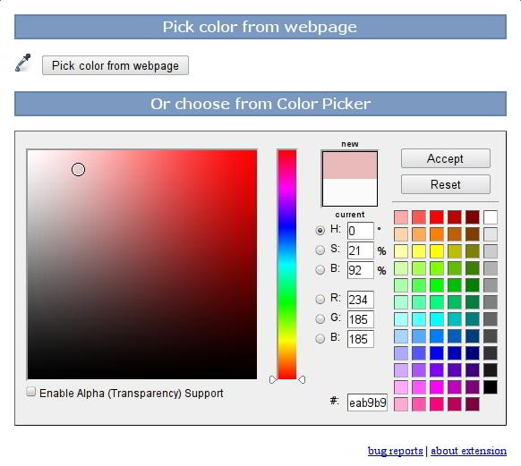 Eye Dropper proširenje služi za određivanje hex ili rgb vrijednosti boje nekog elementa na web stranici. Iako je slična funkcionalnost već sadržana u Pendule proširenju, zgodno ju je imati i kao samostalno proširenje.
