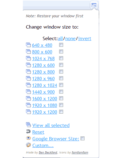 Resolution Test je korisno proširenje za testiranje kako će web stranice izgledati pri različitim rezolucijama monitora (različitim veličinama monitora). Proširenje mijenja veličinu Google Chrome web preglednika na predefinirane veličine, a moguće je dodati i svoje vlastite dimenzije. Iako se ista funkcionalnost nalazi i u sklopu već opisanog proširenja Web Developer, korisno ju je imati prilikom poslova web dizajna i izrade web stranica kao zasebno proširenje.
