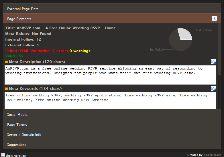 SEO Site Tools proširenje namjenjeno je SEO optimizaciji web stranica. Proširenje za trenutno otvorenu web stranicu automatski prikuplja podatke o broju linkova na Yahoo-u, statistici prometa sa Alexa weba, Google cachu i Google PageRanku, broju indeksiranih stranica na Bingu i sl. Osim toga, prikazuju se i podaci o broju linkova na društvenim mrežama Twitter, Facebook, Digg, Delicious i Reddit. Proširenje pokazuje bitne SEO elemente web stranice poput meta-tagova, title taga, broja linkova i sl. Uz to tu su i informacije o web serveru na kojem su stranice smještene kao i savjeti za poboljšanje odnosno SEO optimizaciju web stranice.