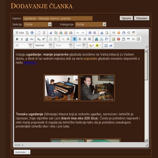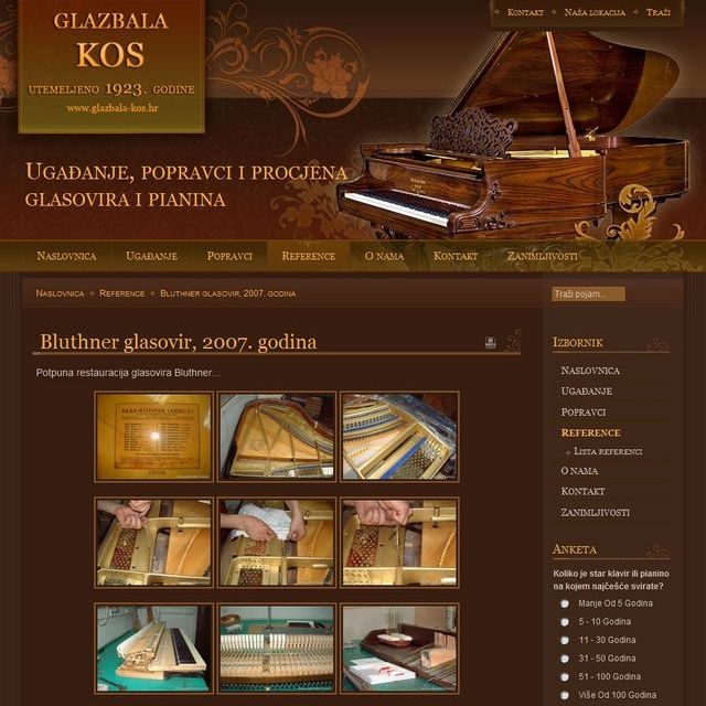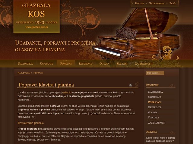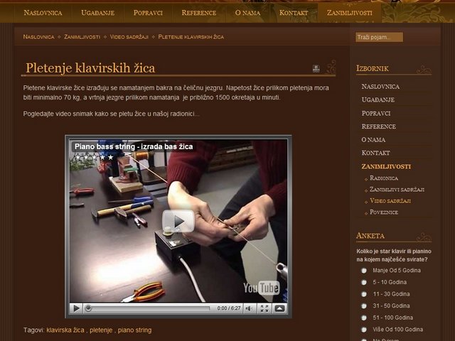 Izgled stranica odiše raskošnim antiknim ugođajem u koji su se fantastično uklopili glasoviri i pijanina kojima se tvrtka bavi, a sve je popraćeno obiljem fotografija i video sadržaja.