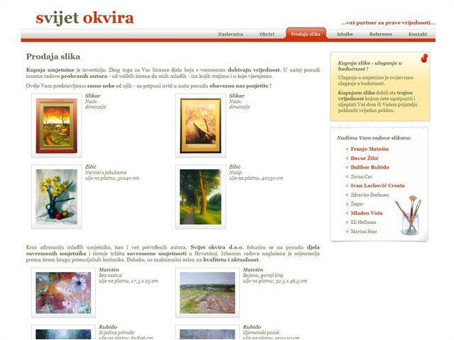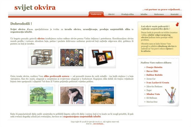 statične HTML stranice (Web paket Start), 6 stranica, moderan i pregledan dizajn stranica, kontakt forma za slanje upita, statička karta lokacije firme, ispravan CSS i HTML Transitional kod, kompresija CSS-a radi bržeg učitavanja stranica, JavaScript programski kod za "zoomiranje" slika, osnovna SEO optimizacija sadržaja (ključne riječi, title, alt, meta-tagovi...).